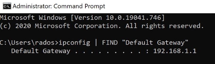 ipconfig | FIND "Default Gateway"