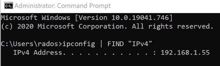 ipconfig | FIND "IPv4"
