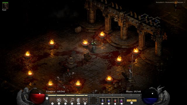 Na początku przygody z Resurrected wybrałem swoją ulubioną klasę sprzed lat. Barbarzyńca zawsze był dla mnie oczywistym wyborem – góra mięśni, która wyrzyna hordy wrogów za pomocą kos, toporów i innych przerażających narzędzi mordu. A przynajmniej tak go zapamiętałem. W rzeczywistości jednak ten dziki wojownik ma nudne skille (wiele z nich to pasywki lub zwykłe ataki z jakimiś dodatkowymi efektami) i słabo sobie radzi z gromadami wrogów – a w hack’n’slashach nie ma nic lepszego, niż zmieść hordę potworów jednym potężnym ciosem. A tutaj, w stareńkim Diablo 2, każdego z nich trzeba ręcznie kliknąć – w efekcie po paru godzinach zabawy barbarzyńcą zwanym przeze mnie Barbelkiem poddałem się, bo nuda i powtarzalność wylewały się z ekranu.