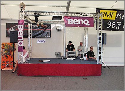 W roli głównej wystąpił rozgadany konferansjer, ewokujący wprost bigcycowego Skibę, który bardzo słusznie postępował zagłuszając swoim śpiewnym głosem poczynania „didżejów”, próbujących klecić na zapleczu odrobinę trance’u z płyt kompaktowych. Gracze zdawali się jednak niewzruszeni przez jego nieustające dowcipy. Stoiska z załączonymi grami okupowane były niemal w stu procentach przez większość imprezy. Można było pomęczyć tytuły zarówno nowsze (uwagę zwracały świetne LCD-ki i kontrolery na stanowiskach Logitecha – Midnight Club 3 był chyba najciekawszą prezentowaną tu pozycją), jak i starsze, w rodzaju dopiero co wchodzących na nasz jak-zawsze-na-czasie rynek Sid Meier’s Pirates. Sporą popularnością cieszył się turniej Call of Duty, w którym głowną nagrodą była „konsola najnowszej generacji”. Jaka? No, oczywiście, wcielona klęska fińskiego potentata telefonii komórkowej – Nokia N-Gage. Poza tym do wygrania był całkiem spory asortyment różnorakich gadżetów ufundowanych przez sponsorów całego przedsięwzięcia. Dość smutnym momentem była prezentacja pada do X-Boxa w charakterze nagrody. Wodzirej entuzjastycznie pyta „Pad do X-Boxa, kto ma X-Boxa?”, na co zgromadzeni odpowiadają konsternacją i dźwięcznym „Yyyy...”. Chomiczówka, chomiczówka...