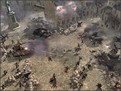 Cokolwiek ni stąd ni zowąd THQ pokazała na targach coś absolutnie pięknego. Strategię czasu rzeczywistego, o której mało powiedzieć, że poziomem wykonania konkuruje z najlepszymi FPS-ami, ona niczym się od nich wizualnie nie różni. Piękny świat, doskonale animowane postaci ludzi, drobiazgowo wykonane modele sprzętu, fizyka pozwalająca na efektowne niszczenie absolutnie wszystkiego, kamera pozwalająca na obserwowanie pola walki bądź z lotu ptaka, bądź znad ramienia dowolnie wybranego żołnierza. Tytuł tego czegoś niesamowitego to Company of Heroes . Zaprezentowana demonstracja nie była niczym innym jak filmem z przykładowej rozgrywki – do końca pokazu nie byłem pewien, czy to, co oglądam, to na pewno RTS.