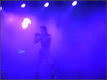 Wśród uczestników piątkowej imprezy rozpoznać można było zarówno branżowców „pokazowych” (powszechnie kojarzeni redaktorzy pism, prezenterzy telewizyjni), jak i typowych białych kołnierzyków, którzy na co dzień pełnią role pozbawione szczególnego rozgłosu. Integracja biznesowa przebiegała ze skutecznością wprost proporcjonalną do ilości serwowanych drinków, a zakłócana była jedynie powtarzającymi się raz na jakiś czas atrakcjami. Tego wieczoru odbyły się dwa turnieje: BUZZ: Muzyczny Quiz oraz Singstar 80’s (z polskimi piosenkami) – co ciekawe w pierwszym z nich zwyciężył.. Liroy (tak, „ten” Liroy). W obydwu nagrodami były świeżutkie PSP. Atmosferę regularnie podgrzewały występy, hm... artystyczne. Generalnie schemat był taki, że im później się robiło, tym mniej ubrane były występujące, hm... artystki. Swawolne tańce (obecne także przez większość wieczoru na dwóch znajdujących się po bokach sceny platformach) swą kulminację odnalazły jakoś po północy, kiedy to wystąpiła striptizerka używająca żywych węży i pochodni jako akcesoriów pomocniczych. „No ej, to jest konkret!” – zawołał znajomy z pewnej gazetki konsolowej. Aparaty i kamery poszły w ruch, znikły nawet kolejki do barków (chyba jedyny raz w trakcie imprezy, ha). W sumie heca, że Sony zdecydowało się zorganizować party tak przesycone erotyzmem. Wiadomo, w naszej branży (w której stereotypem jest przecież okularnik siedzący po nocach przed kompem i nie widujący zbyt często kobiet) paradoksalnie istnieje głęboko zakorzeniona tradycja wynajmowania urodziwych a przy tym niekompletnie ubranych niewiast na wszelkie eventy. ![]() Nie marudzić, że zadymione – w przeciwnym razie nie nadałoby się do publikacji :-)
