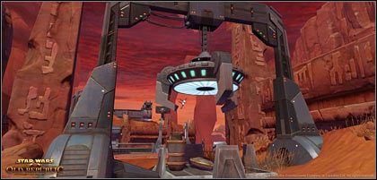 Po wysłuchaniu powyższych informacji mam okazję osobiście przetestować fragment gry. Wcielam się właśnie w Sith Inquisitora, by już po chwili odnaleźć się w lokacji o nazwie Valley of the Dark Lords na planecie Korriban (ojczysta planeta Sithów). Otaczają mnie charakterystyczne, czerwonawe skały i jakieś pradawne posągi.
