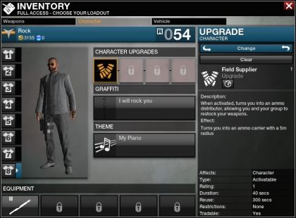 Munitions Specialist – są trzy sposoby na pozyskiwanie amunicji. Pierwszy to jej dystrybutory – Joker Ammo, w których można zakupić ją za niewielką opłatą oraz uzupełnić i wymienić zestawy broni. Drugi i trzeci powiązany jest z graczami. Dobierając odpowiedni ekwipunek (Field Supplier), gracz raz na 5 minut może otworzyć skrzynię z nabojami, z której on i inni użytkownicy uzupełniają zapasy. Można również w ten sposób wyposażyć własny samochód (Mobile Supply Unit), by zmienić go w ruchomy dystrybutor pocisków. Przy tej okazji warto wspomnieć, że dysponujemy dwoma zapasami amunicji. Pierwszy – bieżący: określa, ile nabojów gracz może nosić w danym momencie, drugi – zapasowy: stanowi o całkowitej ilości posiadanej amunicji. W przypadku uzupełniania braków są one pobierane z drugiego zapasu. Należy zatem zawsze kontrolować jego stan, by nie znaleźć się w sytuacji, kiedy nie mamy z czego uzupełnić niedoborów amunicji. Awans tej roli odbywa się za każdym razem, gdy ktoś korzysta z naszego dystrybutora pocisków, niezależnie, czy będzie on stacjonarny, czy mobilny.