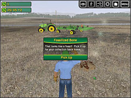 W Drive Green wszelkie „znajdźki” (kasa) w postaci dolarów Deere’a leżą na polu – dosłownie. Nagradzani (kolejnymi $) jesteśmy również za efektywność naszej pracy, tak na polu sąsiada, jak i na swoim (im szybciej się na nim uwijamy, tym więcej zarabiamy). Do tego dochodzą „znajdźki” z prawdziwego zdarzenia, czyli skamieliny, również porozrzucane po polach – niestety ich odnajdywanie i kolekcjonowanie nie stanowi praktycznie żadnego wyzwania, podobnie jak w przypadku kasy.