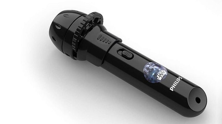 Coś dla najmłodszych lub największych fanów Gwiezdnych wojen. LED-owa latarka daje nie tylko ciepłe, przytulne światło, ale jest też małym projektorem fotosów z kultowej serii filmów. Wymienne kółka w tubie latarki, z ośmioma obrazkami każde, umożliwiają rzucanie na ścianę różnych slajdów.