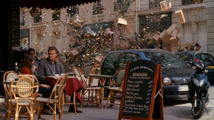 Jednym z najbardziej charakterystycznych obrazów są też „wybuchające” paryskie kawiarnie. Jest to moment, w którym główny bohater (grany przez świetnego Leonardo Di Caprio) przedstawia system „projektowania” snów potrzebnej mu architektce (Ellen Page). Do efektownych eksplozji wykorzystano specjalne armatki powietrzne. Co więcej, przewracające się samochody oraz okoliczne przedmioty rzeczywiście zostały wyszarpnięte za pomocą linek, co dało efekt impetu wybuchów. Takich smaczków jest naprawdę wiele, dlatego film nie pozwala oderwać oczu od ekranu.