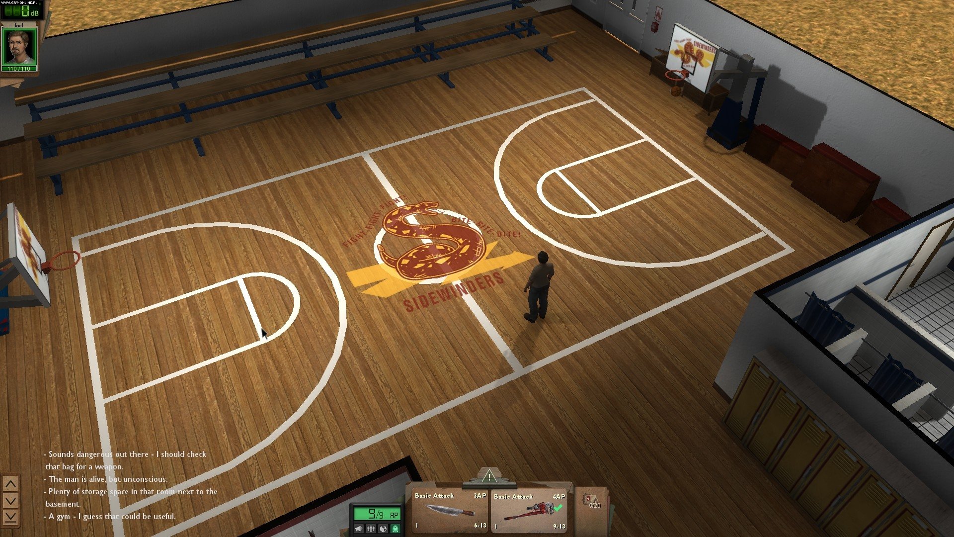 Pojedynki z napotkanymi przeciwnikami przebiegają więc dosyć standardowo, jednak tylko do momentu, w którym zaobserwujemy, iż każda ofensywna akcja wpływa na miernik decybeli umieszczony obok portretu naszej postaci. Zgadza się – bicie zombiaków kijem bejsbolowym lub wystrzał z pistoletu, powodują wzrost ilości słyszalnych w okolicy hałasów. Jest to o tyle istotne, iż w chwili, gdy będziemy zachowywać się zbyt głośno, z okolicy zaczną w naszym kierunku napływać kolejne fale nieumarłych. I to także spoza granic aktualnej mapy! Pojedyncze zombie nie stanowią większego problemu (zwłaszcza jeśli weźmiemy pod uwagę, to że kompletnie nas ignorują, o ile nie znajdziemy się metr przed nimi), jednak w rozsierdzonej hałasem grupie, zwiastują ogromne kłopoty. Mając do wyboru oddanie śmiertelnego strzału ze znalezionego karabinu lub żmudne, choć niemal bezgłośne, cięcie zombiaka nożem, często wybierałem więc tę drugą opcję. Chyba jeszcze w żadnym RPG nie zdarzyło mi się świadomie korzystać ze słabszej broni, ale w Dead State dosyć szybko weszło mi to nawyk.