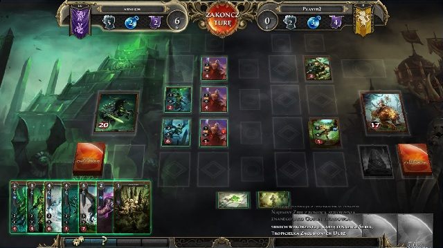 Po założeniu konta w Uplay i po pierwszym zalogowaniu się do gry dostajemy do wyboru jedną z trzech talii kart: Nekropolia, Przystań lub Inferno. Z przyzwyczajenia na początku sięgnąłem po deck nieumarłych, a następnie stoczyłem pierwszą bitwę przeciwko sztucznej inteligencji, będącą jednocześnie samouczkiem.