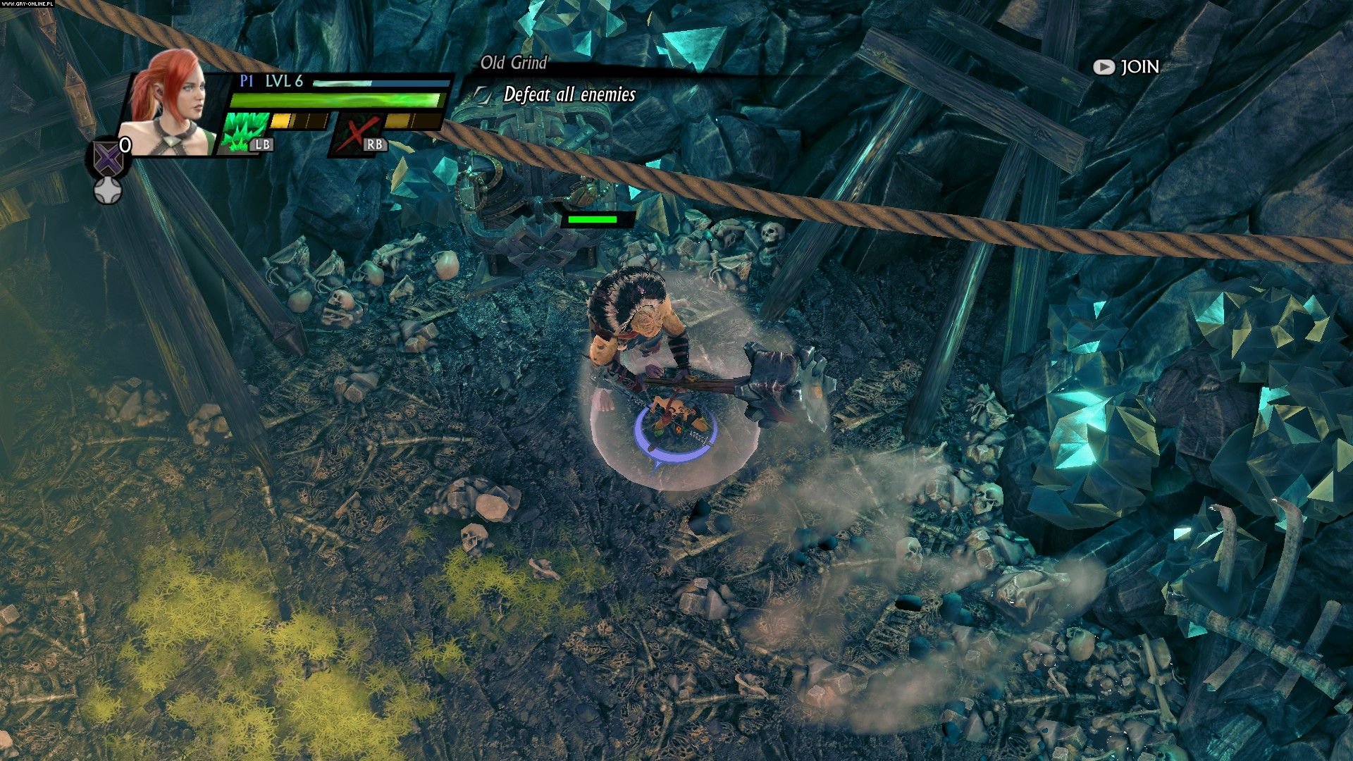 Zabawa z padem w rękach jest niezwykle przyjemna. Jako że gracz nie ma możliwości rotacji ani przesuwania kamery, która samoczynnie podąża za akcją, ukazując dokładnie to, co zechcieli nam pokazać projektanci poziomów i graficy, jedną z gałek analogowych pada sterujemy postacią, podczas gdy druga służy do wyboru umiejętności specjalnych i mikstur. W ferworze walki to rozwiązanie sprawdza się intuicyjnie. Podobnie zresztą jak dobór pozostałych przycisków. W przypadku podpięcia do komputera pada od Xboksa 360 przycisk „A” odpowiada za standardowy atak, „X” pozwala na wykonanie ataku specjalnego pozwalającego na przykład zdjąć na kilka sekund blok tarczownika, chwilowo zneutralizować wirujące niczym tornado stwory czy przebić się przez magiczną barierę.