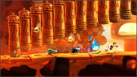 Wraz z dwoma innymi graczami dostajemy do dyspozycji tryb kooperacji – z trójki bohaterów w udziale przypada mi malutki przedstawiciel rasy Teensie – czarny stworek, którego główny atut to niesamowita zwinność i możliwość prześlizgnięcia się nawet przez najmniejsze krawędzie. Kolejny z uczestników rozgrywki otrzymuje zadanie zaopiekowania się Globoksem – niebieskim, dość otyłym stworzeniem, którego charakterystycznymi cechami są siła fizyczna i, wbrew pozorom, łatwość w przeskakiwaniu pomiędzy trampolinami. Oczywiście prym we wszechstronności wiedzie Rayman – prawdziwa maszyna do likwidowania wrogów i niezwykle kreatywny bohater, jak na główną postać przystało.