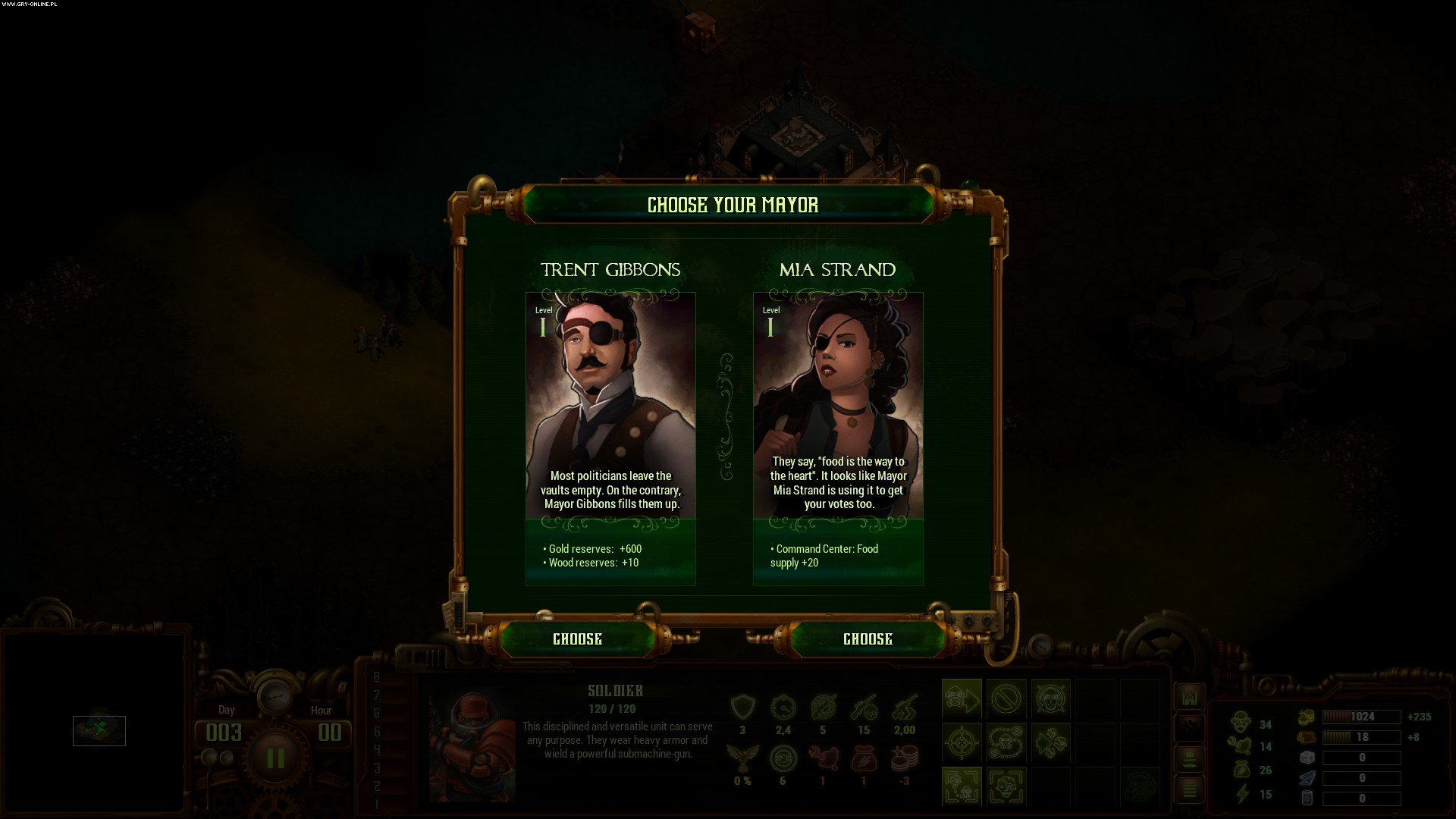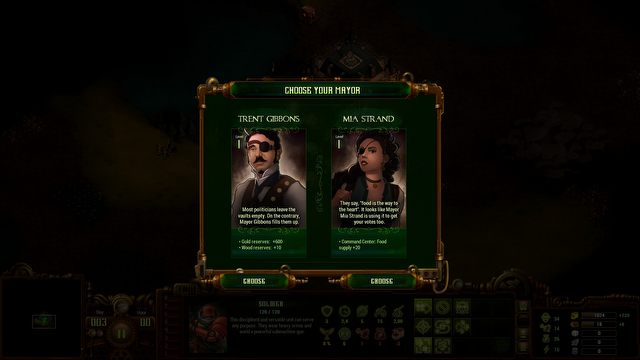 Wybór burmistrza jest ważny tylko przez wzgląd na bonusy, które każdy z nich oferuje - mogą to być nowe jednostki, zaopatrzenie lub procentowe zwiększenie wydobycia danego surowca.