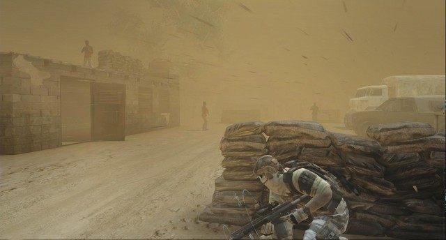 Pora zatem przenieść się na właściwe pole walki. Wraz z trójką kompanów trafiam w pobliże małej wioski zlokalizowanej w samym środku piaszczystej pustyni. Choć na pierwszy rzut oka to miejsce wygląda jak mała osada, grupa strażników patrolujących obrzeża zabudowań sugeruje, że mamy do czynienia z grubszą sprawą. Moim zadaniem jest podsłuchanie niejakiego Dede Macaby – afrykańskiego dyktatora znanego ze skłonności do szemranych interesów. Już na samym początku wykorzystuję bardzo użyteczną opcję, czyli tryb synchronizacji – zaznaczam czterech najbliższych przeciwników, zaś reszta zespołu zajmuje pozycje pozwalające jednym trafieniem zlikwidować wskazanych antagonistów. Na moją komendę, jaką jest strzał w kierunku jednego z wrogów, cała grupa natychmiast eliminuje pozostała trójkę. Korzystając z rozrzuconych po drodze osłon, wszyscy szybko docieramy w okolice pierwszych zabudowań. Co ciekawe, nasz cel w asyście jednego strażnika swobodnie przechadza się po uliczkach wioski – założenia misji wykluczają jednak jego natychmiastowe zlikwidowanie. Cała grupa musi cicho przedostać się do centrum osady, czeka nas zatem kilkanaście minut skrupulatnego oczyszczania ulic ze strażników. Co zrozumiałe, często korzystam z trybu synchronizacji – na dachach prowizorycznych budynków aż roi się od snajperów, a wykrycie działań ekipy wiąże się z zakończeniem gry. Cichą eksplorację mapy ułatwia specjalny filtr niewidzialności, który uruchamia się wówczas, gdy chowamy się za przeszkodami lub przykucamy. Znakomicie spisuje się strzelba z tłumikiem, dzięki której niezauważenie zabijam wrogów, zaś w kilku momentach mogę załatwić przeciwnika, zachodząc go do tyłu. Tak oto po nitce docieram do kłębka…