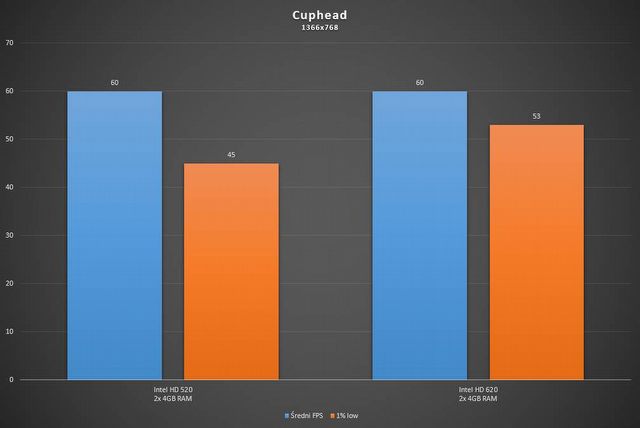 W rozdzielczości 1920x1080 zdarzają się częste spadki liczby wyświetlanych klatek na sekundę, ale mówimy tutaj o wartościach nadal przekraczających próg 30 fps. Obniżenie rozdzielczości do 1366x768 powoduje, że HD 520 oraz HD 620 generują ponad 60 fps, co czyni to optymalnym zabiegiem. Nawet pomimo faktu, że absolutnie nie jest w tej grze wymagana, taka płynność cieszy oko i poprawia doznania z rozgrywki (albo rzucanie kontrolerem, bo Twoja postać znowu zginęła).