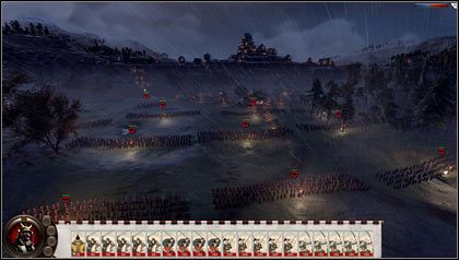 Rozpoczynamy od wysłania do ataku oddziału piechoty. Tradycyjnie – jedna grupa kilkudziesięciu żołnierzy wbija się w drugą, po czym wynik starcia pomiędzy każdą parą walczących liczony jest osobno. Praca kamery pozwala napawać się tym widokiem. Kiedy potyczka się kończy i zwycięzcy odchodzą, na placu boju zostaje jeden umierający żołnierz – przechodzi parę kroków z wnętrznościami przebitymi mieczem, po czym pada. Ma być więcej tego typu smaczków.