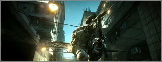 W tej sytuacji trzeba było ukryć się na bezpiecznej pozycji i stopniowo eliminować przeciwników. Przydał się szczególnie karabin z podświetlającym żołnierzy celownikiem – dzięki niemu można szybko zorientować się, skąd nadchodzi niebezpieczeństwo, i rozprawić z odległymi strzelcami. Dodatkiem znanym chociażby z Bad Company 2 była możliwość wskazywania przeciwników sprzymierzonemu graczowi. To ułatwienie nie pomogło nam jednak za bardzo i wrogowie roznieśli nas w pył.