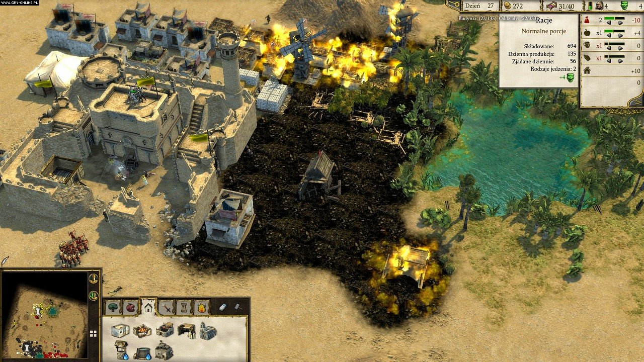 Oczywiście trudność poszczególnych starć jest determinowana również charakterystyką mapy w kontekście dostępności do terenów zielonych (tylko na nich można rozpocząć uprawy), złóż rudy żelaza, kamieniołomów oraz przeszkód naturalnych w postaci gór czy rzek. Zróżnicowana i charakterystyczna dla pustynnego klimatu topografia terenu z wymagającymi przeciwnikami nadaje temu trybowi rozgrywki niezwykłego uroku i miodności. Dodatkowo dynamika starć nie pozwala na oderwanie się od monitora. To powrót w prostej linii do niezapomnianych chwil spędzonych z „jedynką”. Jeśli taki był plan studia Firefly, to w mojej opinii został zrealizowany niemal w 100%.