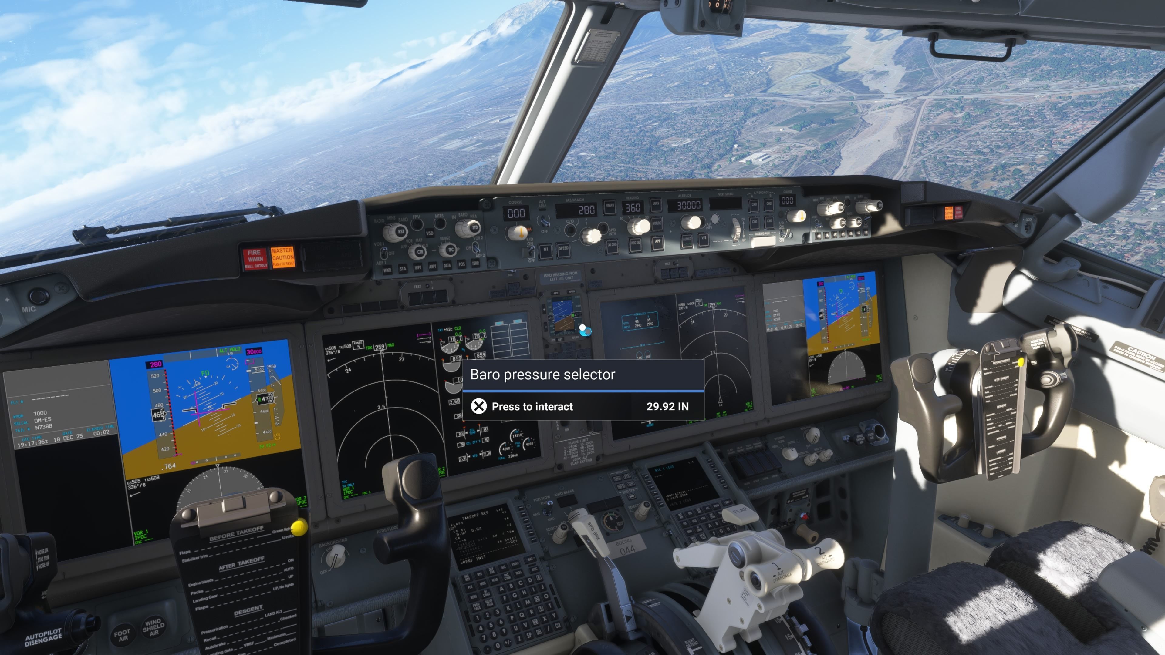 Obsługa kokpitu Boeinga 737 aż się prosi o nieco bardziej zaawansowany joystick z przepustnicą, a nie kontroler.Microsoft Flight Simulator 2024, Xbox Game Studios, 2025.