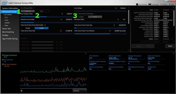 Istnieje kilka programów umożliwiających ingerencję w napięcia procesorów. My zdecydowaliśmy się na popularną aplikację od samego Intela - Extreme Tuning Utility (XTU). Jest ona prosta w użyciu i wyposażona w bardzo przejrzysty interfejs.