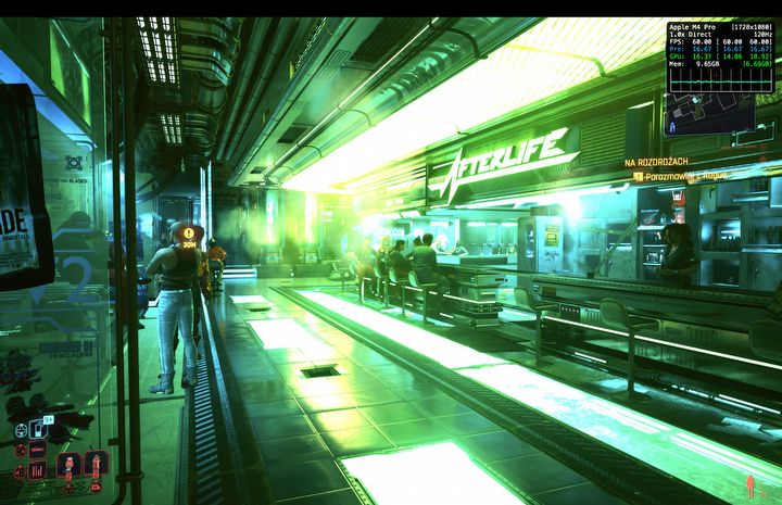...i włączony. Da się tak grać, ale spadek płynności jest odczuwalny.Cyberpunk 2077: Ultimate Edition, CD Projekt RED, 2025.