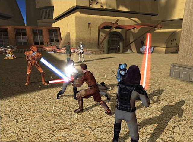 Sam KotOR okazał się rasowym, w pełni trójwymiarowym i bardzo ładnym wizualnie RPG, w którym akcję oglądamy z perspektywy trzeciej osoby. Oparty na zasadach fabularnej gry Star Wars: Roleplaying Game firmy Wizard of the Coast, oferował rozbudowany system rozwoju postaci, który uwzględniał nie tylko podstawowe atrybuty i umiejętności, ale również rozmaite cechy dodatkowe i – w późniejszej fazie zmagań – zdolności wynikające z posługiwania się Mocą. Dużą zaletą tej produkcji była swoboda w podejmowaniu działań, pozwalająca rozwiązywać napotykane problemy na różne sposoby (skojarzenia z Deus Ex jak najbardziej na miejscu), a także świetnie zrealizowany system walk, pozornie rozgrywanych w czasie rzeczywistym, ale tak naprawdę wykorzystujących sztywny podział na tury. Gry tej w żadnej mierze nie można było określić mianem prostej rąbanki, wręcz przeciwnie. Dzięki opcji zatrzymania zmagań pod koniec każdej rundy i wydania rozkazów swoim towarzyszom kanadyjskie dzieło umożliwiało wprowadzenie w życie różnych założeń taktycznych. Warto również w tym miejscu zaznaczyć, że Knights of the Old Republic okazało się produktem bardzo obszernym. Na ukończenie przygody trzeba było przeznaczyć około sześćdziesięciu godzin.
