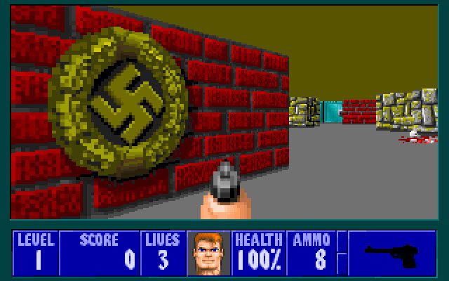 Jeśli chodzi o mechanikę rozgrywki, Wolfenstein 3D to rasowa strzelanina, w której akcję obserwujemy z perspektywy pierwszej osoby. Stopień skomplikowania jest tu oczywiście niewielki, a termin „3D” kompletnie nie oddaje tego, z czym trójwymiarowe shootery kojarzone są dziś. Tak naprawdę Blazkowicz może poruszać się tylko w jednej płaszczyźnie, bo wszystkie poziomy są płaskie jak stół. Poszczególne labirynty zostały zbudowane zresztą w bardzo prosty sposób – z sześcianów, których boki pokryte są z każdej strony identyczną teksturą. Ze względu na ograniczenia technologiczne John Carmack nie mógł narzucić podobnych obrazków na sufity i podłogi.