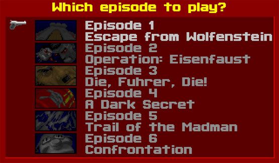 Finalna, pecetowa wersja gry Wolfenstein 3D składa się z sześciu dużych epizodów. Dokładnie dwadzieścia lat temu zadebiutował tylko pierwszy z nich (Escape from Wolfenstein), który opowiada o ucieczce Blazkowicza z hitlerowskiej twierdzy. Produkt był dystrybuowany wówczas w systemie shareware, co oznacza, że każdy mógł go do woli kopiować i użytkować za darmo. Za następne dwa etapy (Operation: Eisenfaust i Die, Fuhrer, Die!) trzeba już było uiścić stosowną opłatę. Kilka miesięcy po premierze na rynek trafiło płatne rozszerzenie o nazwie Nocturnal Missions, które zawierało trzy nowe zestawy map: A Dark Secret, Trail of the Madman i Confrontation). Akcja dodatkowych misji rozgrywa się pomiędzy drugim a trzecim epizodem, co oznacza, że zabicie Hitlera wieńczy przygody dzielnego komandosa.