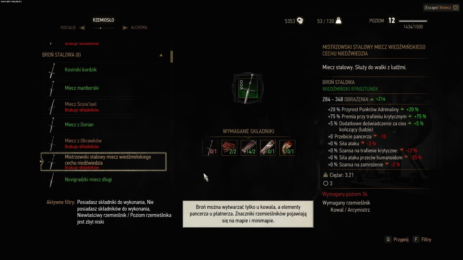 Obie gry kładą duży nacisk na system rzemiosła, więc porównywanie ich pod tym akurat względem wydaje się dość naturalne. W jednym i drugim przypadku mechanika rozgrywki zachęca do gromadzenia ton pozornie nieprzydatnego śmiecia celem przetworzenia go na rynsztunek. I jakkolwiek Wiedźmin 3 wypada na tym polu bardzo przyzwoicie, Fallout 4 realizuje tę opcję zdecydowanie bardziej interesująco. Owszem, w Dzikim Gonie zdobywanie schematów różnych przedmiotów i noszenie ich rzemieślnikom sprawia dużą frajdę, ale na dłuższą metę sprowadza się to do podmieniania mieczy i kawałków zbroi pojawiających się na Geralcie oraz zwiększania cyferek opisujących zadawane obrażenia tudzież inne statystyki. Za sprawą craftingu nie osiągamy tu rzeczy, które w znaczący sposób wpływałyby na wykonywane przez nas czynności – chyba że mówimy o wytwarzaniu nowych rodzajów petard czy warzeniu wyjątkowych eliksirów; te rzeczywiście potrafią odmienić zabawę w większym stopniu. To jednak tylko dodatki, a miecz zawsze pozostaje mieczem. Z drugiej strony tak naprawdę nie ma się co czepiać wiedźmińskiego craftingu – w końcu nikt nie oczekuje od Geralta władania młotami, łukami i halabardami, prawda?