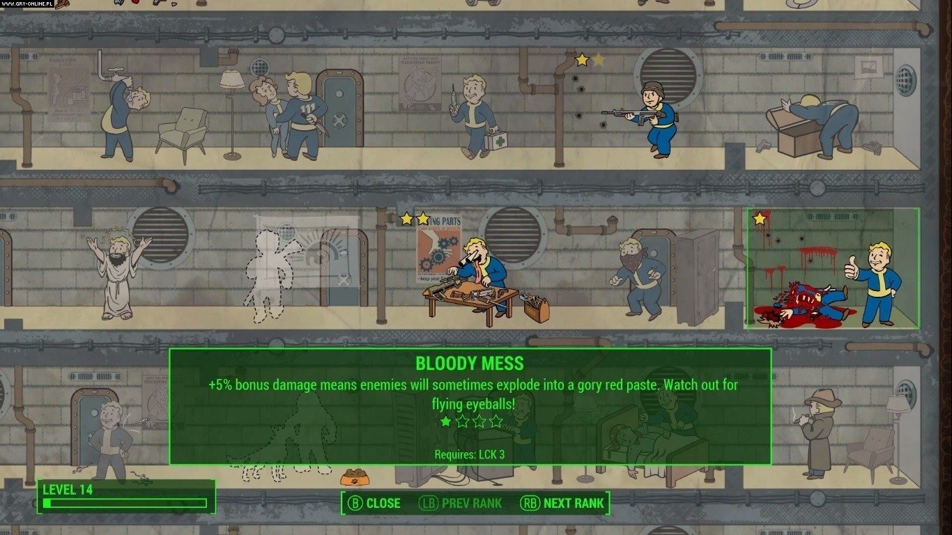 Fallout 4 w dalszym ciągu posiada bowiem jeden z elementów, które składają się na legendę tej serii – perki (w polskiej wersji profity). I nadal ich zdobywanie gwarantuje sporo zabawy, często oferując graczowi zupełnie nowe możliwości, jak hakowanie terminali, zastraszanie NPC, oswajanie zwierząt, wytyczanie szlaków komunikacyjnych między nadzorowanymi osadami, korzystanie z pomocy Tajemniczego Nieznajomego w walce etc. Wprawdzie podpięcie korzyści, które do tej pory były zarezerwowane dla umiejętności (np. poprawa właściwości środków leczniczych wraz z rozwojem zdolności medycyna), pod perki odbiło się negatywnie na ich ogólnej atrakcyjności i nadmiernie upodobniło cały system do Skyrima, ale ewolucja bohatera wciąż potrafi sprawić niemało satysfakcji.