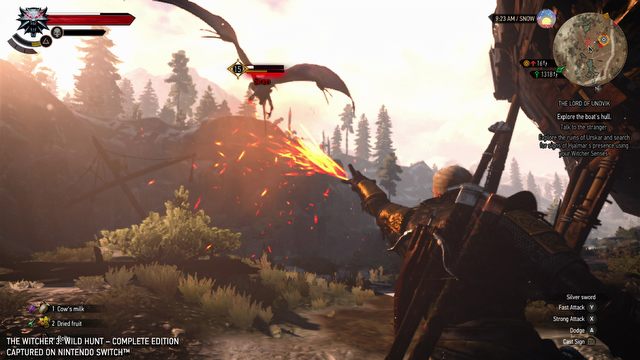 Co mnie niewątpliwie cieszy, to fakt, że autorzy konwersji pomyśleli o tym, by ułatwić życie graczowi, nawet takiemu, który po Switcha sięga raz na ruski rok lub w ogóle. W wersji mobilnej „Switchera” automatycznie powiększają się wszystkie napisy wyświetlane na ekranie, a jak wiemy, w Dzikim Gonie jest ich niemało. Widać, że ten aspekt był solidnie testowany przez autorów konwersji. Nie ma żadnych problemów, by odczytać mniejsze pod względem rozmiarów teksty, np. te z menu szybkiego wyboru przedmiotów.