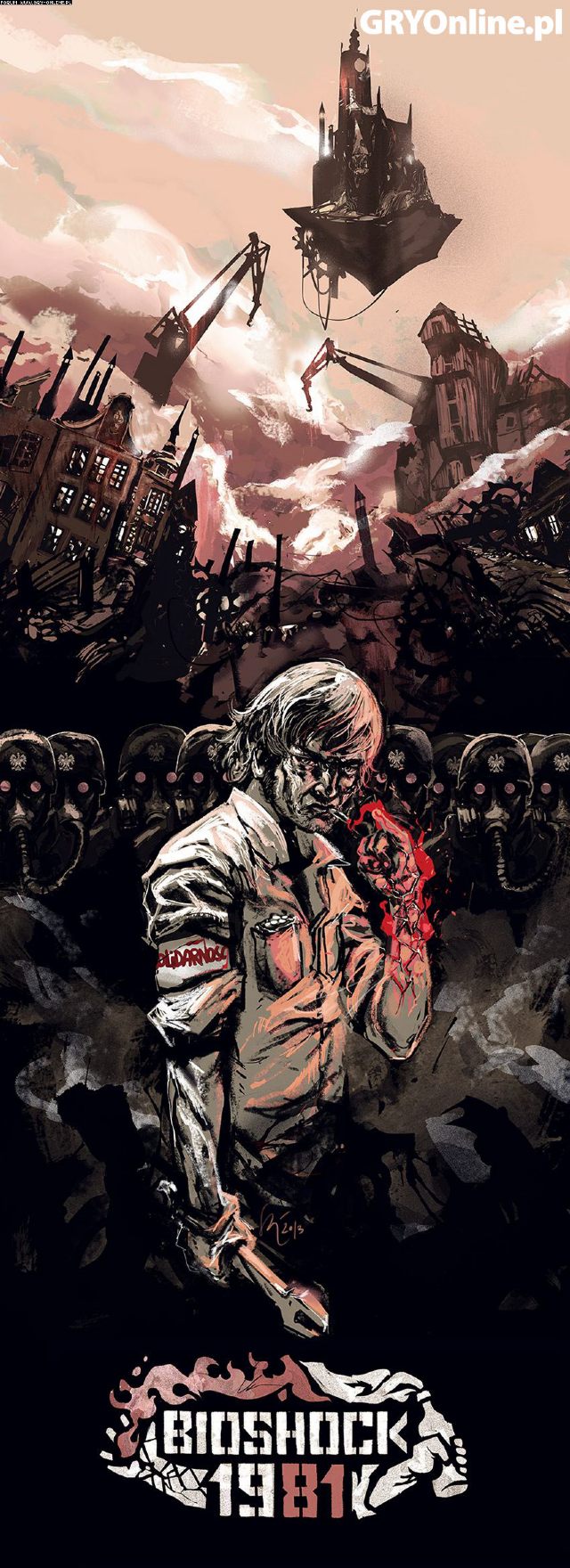 Cześć, tu Kurist. Mieszkam w Gdańsku od prawie 9 lat, więc wybór tego miasta był dla mnie dość naturalny. Jeśli zaś Gdańsk, to pierwszym skojarzeniem była „Solidarność”, co jest dla mnie totalnym samograjem. Zatem ideą było, by powiązać trochę historii Gdańska (jak wiadomo, to miasto o bogatej tradycji ruchów społecznych) ze światem gry. W mojej wizji alternatywny Gdańsk roku 1981 (data mocno symboliczna) jest zdewastowanym centrum walki o wolność w zdegenerowanym świecie zła i korupcji, gdzie obdarzony nadnaturalnymi mocami stoczniowiec walczy z hordami Czerwonej Zarazy, a to wszystko podlane steampunkowym sosem. Pracę „Bioshock 1981” wykonałem w technice digipaintingu za pomocą tabletu w programie Photoshop. Całość jest rysowana od początku do końca.