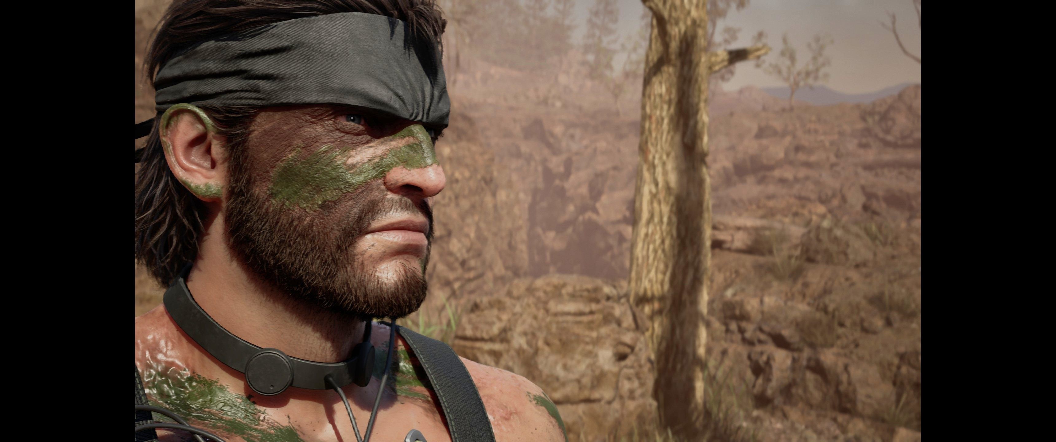 Pomyślałem sobie, że chyba da się przeżyć, grając w 60 fps, w końcu to powolna skradanka, jednak im dalej w las, tym robiło się gorzej. Metal Gear Solid Delta nie wspiera monitorów ultrawide, mimo że w menu głównym można wybrać taką rozdzielczość. Dość mocno zdziwiłem się, gdy zaznaczyłem opcję 3440 na 1440 pikseli, a otrzymałem 2560 na 1440 pikseli z czarnymi pasami po bokach.