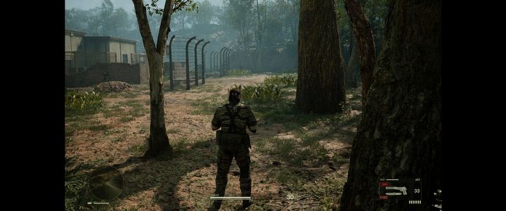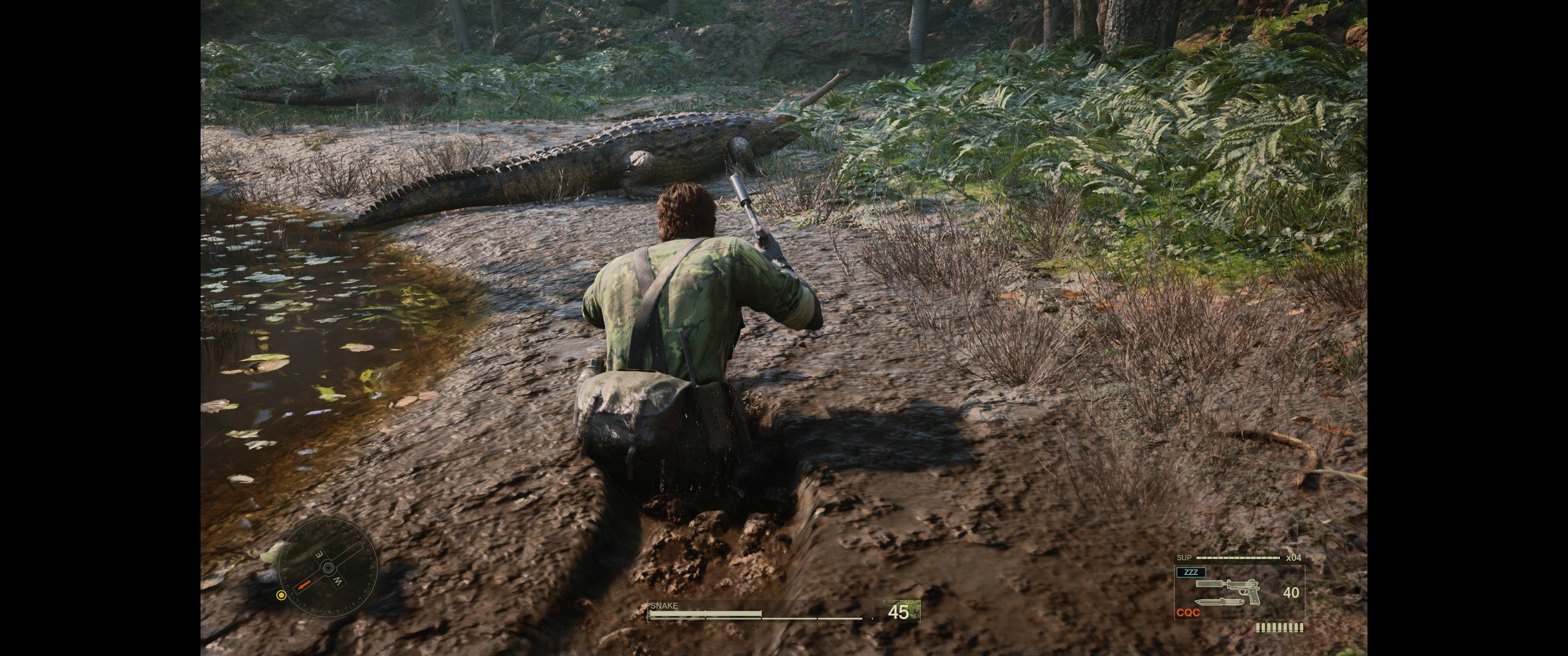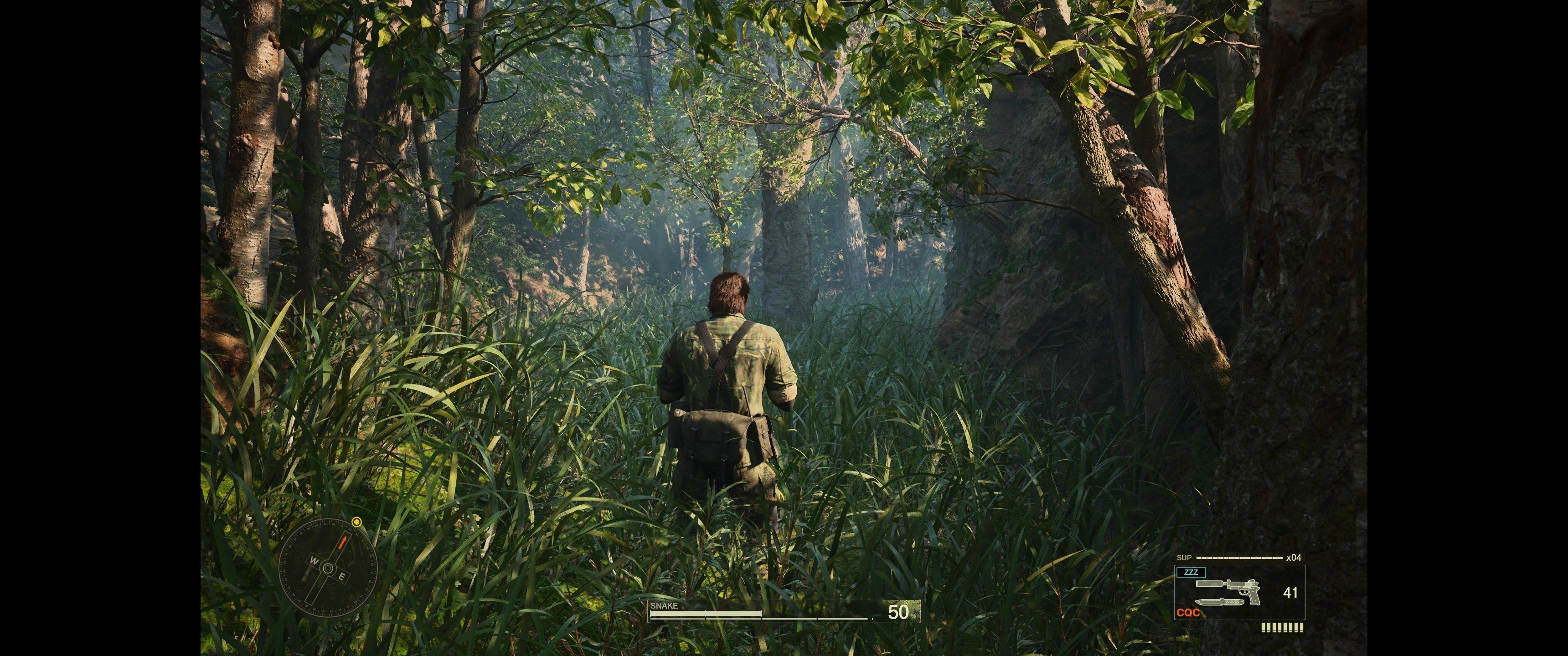 Po początkowych frustracjach wskoczyłem wreszcie do gry i moim oczom ukazała się całkiem niezła oprawa graficzna. W pierwszej misji Snake przedziera się przez gęstą dżunglę – z masą liści, błota, drzew i dość sporą liczbą przeciwników. Pewne rozczarowanie stanowi jednak fakt, że różnice między ustawieniami ultra a wysokimi widać głównie w odległości rysowania cieni i LOD. Ustawienia średnie wypadają zauważalnie gorzej, głównie przez braki w oświetleniu oraz cieniowaniu, a w niskich gra moim zdaniem prezentuje się mniej klimatycznie niż oryginalny Metal Gear Solid 3. Cienie wtedy praktycznie nie istnieją, a jakość oświetlenia jest tak kiepska, że aż oczy bolą. Jeśli nie musicie, nie grajcie na „low”.