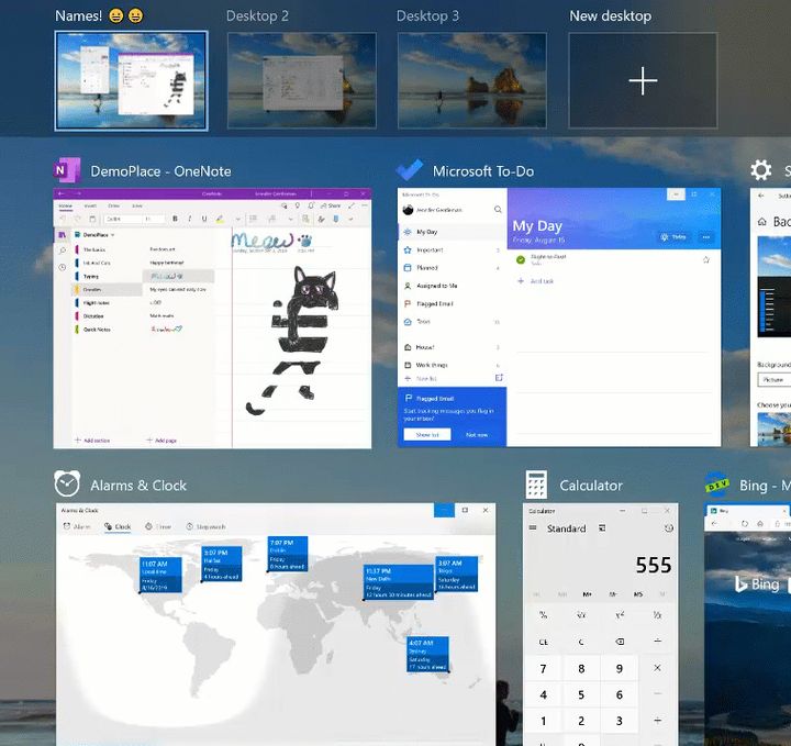 Kolejną nowością będzie możliwość nazywania wirtualnych pulpitów - dzięki temu będziemy mogli łatwiej rozpoznać, który z nich jest przeznaczony do pracy, a który do zabawy. Może to pomóc w codziennym użytkowaniu komputera, a także prowadzeniu prezentacji. Wystarczy wcisnąć przycisk Windows oraz Tab, a następnie kliknąć nazwę danego pulpitu - otworzy to okno jej edycji. Warto odnotować, że nadane etykiety zostaną zapisane i będą aktywne także po restarcie systemu.