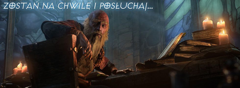 Kto spędził trochę czasu eksplorując światy Sanktuarium, zgodzi się, że wykreowany przez Blizzarda świat cechuje się specyficzną atmosferą. Duży udział w jej tworzenie miał Deckard Cain, stary mędrzec. gotowy podzielić się z nami swoją wiedzą na temat świata oraz zidentyfikować magiczne przedmioty. Każda rozmowa zaczynała się od pamiętnego zwrotu „Zostań na chwilę i posłuchaj”, który stał się jednym z najbardziej charakterystycznych zwrotów w całym gatunku RPG (dyskusję na temat tego czy hack and slashe możemy zaliczyć do gier fabularnych zostawmy sobie na inną okazję). Przywitanie pojawiło się też w innych grach z serii, choćby w „trójce”, gdzie „Stay awhile and listen” to nazwa osiągnięcia otrzymywanego za wysłuchanie wszystkiego, co starzec ma nam do powiedzenia. Swoją drogą nie wiem dlaczego, ale sam najbardziej z całej serii zapamiętałem inny zwrot - „Nie w mieście”. Może ze względu na skłonności do prób atakowania wszystkich postaci niezależnych.