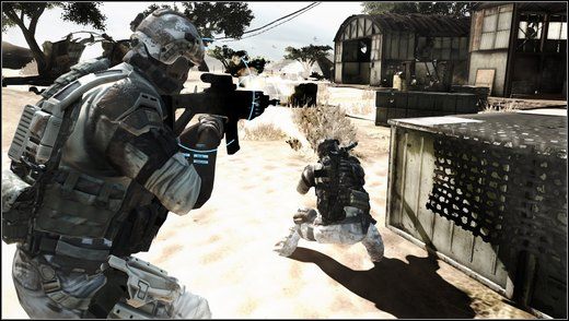 Po zaznaczeniu przeciwników gracze szybciutko podbiegli do pierwszej barykady i skorzystali z systemu osłon. Poruszając się pomiędzy dwiema betonowymi przeszkodami, sprawnie likwidowali ukryte cele. Sielanka nie trwała jednak zbyt długo – ktoś spostrzegł, że ekipa powoli się wykrusza i nie jest to skutek suto zakrapianej imprezy. Czekała nas bezpośrednia walka z mocno nacierającą, kilkuosobową grupą wrogów. W roli specjalisty od spraw nagłych doskonale sprawdził się uzbrojony w karabiny maszynowe żołnierz, który kilkoma szybkimi seriami oczyścił mały placyk przed wioską. Nadeszła pora, by wkroczyć na teren bazy.