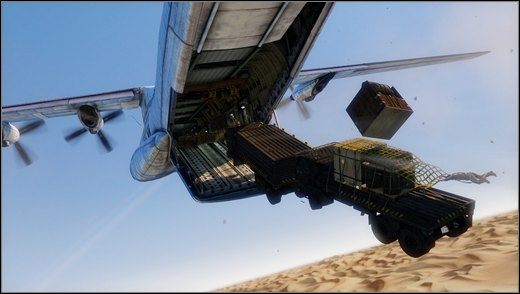 31Nathan Drake wisi na ostatniej z kilku ciężarówek, stanowiących ładunek dużego samolotu transportowego, który mknie nad pustynią. Bohater przed chwilą wypadł z pokładu wraz z mnóstwem innych przedmiotów, ale w locie zdążył pokonać jednego z oprychów i przejąć jego broń. To kulminacyjny punkt prezentacji Uncharted 3: Oszustwo Drake’a, jaką zaserwowała firma Sony. Gra będzie emocjonująca, pełna przygód i jak zwykle odjechana.