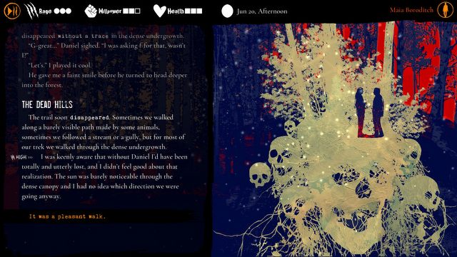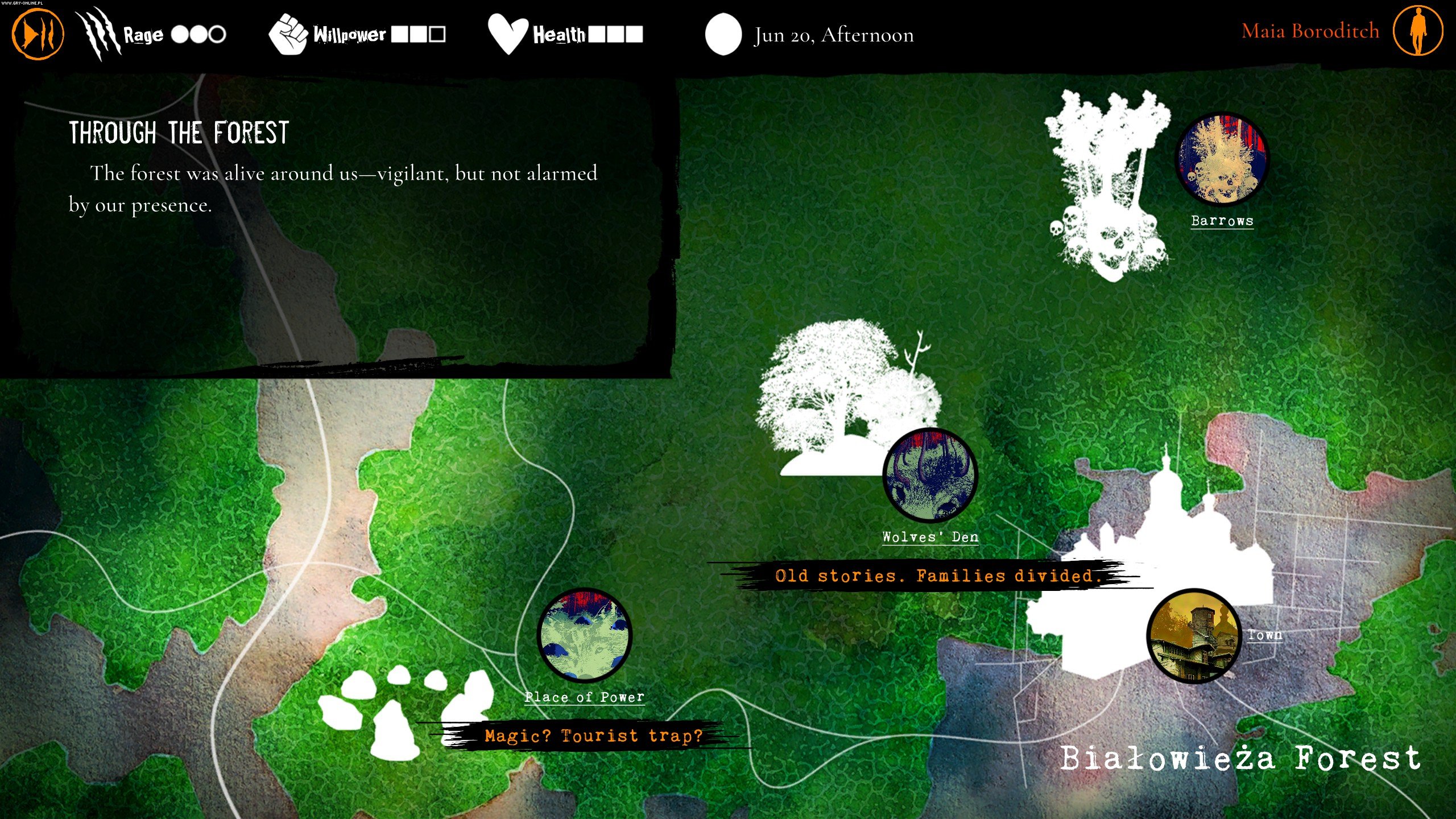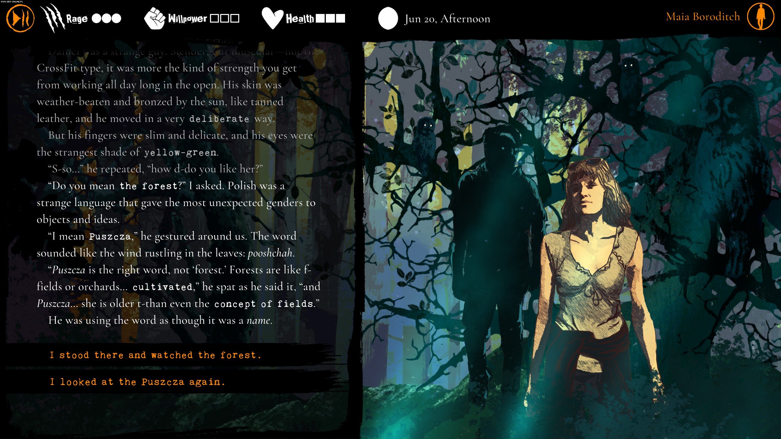 Jeśli zastanawiacie się, czym jest Wilkołak w wydaniu warszawsko-białowieskim, to wszystko z wami w porządku. Gra jest odważna w swej koncepcji i przemawia do nas w zasadzie tylko przy pomocy wyświetlanego na ekranie tekstu, statystycznych – i ładnych – obrazków oraz muzyczki. To wszystko.