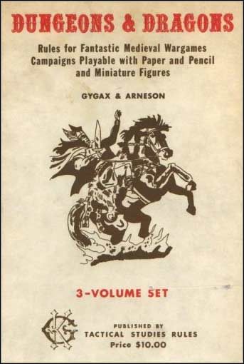Tak zwana pierwsza edycja D&D ukazała się na EasterCon, brytyjskim konwencie fantastyki naukowej. Pierwszy, horrendalny wręcz nakład 1000 egzemplarzy, sprzedał się w przeciągu roku. Gra miała postać kartonowego pudełka, w którym znajdowały się trzy książki: Men and Magic („Ludzie i magia”), Monsters and Treasure („Potwory i skarby”) oraz Underground and Wilderness Adventures („Przygody w podziemiach i dzikich ostępach”).