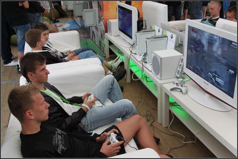Punktem centralnym był duży namiot zapełniony konsolami. W pierwsze dwa dni imprezy spragnieni rozrywki gracze mogli przetestować takie gry jak Fuel, Fight Night Round 4, FIFA 09, Gears of War 2, Halo Wars czy Need for Speed: Undercover. Na żadnej imprezie masowej nie może oczywiście zabraknąć gier muzycznych, toteż zestaw Guitar Hero: World Tour był cały czas oblegany przez fanów gitarowego grania. Prawdziwa wisienka wylądowała jednak na torcie w niedzielę, kiedy to do testów zostały udostępnione stanowiska z Forza Motorsport 3, Batman: Arkham Asylum oraz IL-2 Sturmovik: Birds of Prey. Szczególnie dwie pierwsze gry cieszyły się wielkim zainteresowaniem – i całkiem słusznie, bo prezentują naprawdę wysoki poziom. Na graczy z zacięciem do rywalizacji czekały, rzecz jasna, turnieje. Rozegrano między innymi potyczki w FIFA 09 oraz Halo 3.