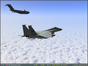 Kontroler lotu – Marcin Słomski – w sposób bardzo stonowany maksymalnie stara mi się pomóc. Po raz kolejny płacę rachunek za kiepściutkie umiejętności komunikacyjne. Do tego wszystkiego wojenno-wojskowe latanie po trasach wytyczonych głównie waypoint’ami ma się nijak do prawdziwej, współczesnej nawigacji. Radiolatarnie, GPS, systemy naprowadzania ILS i wszystko, czego nie wymieniłem, a co jest codziennością we współczesnym lotnictwie, to właśnie jego dzisiejszy wizerunek. Takie warunki, maksymalnie zbliżone do „reala” w świecie symulatorów oferuje tylko Microsoft Flight Simulator, z kolejnymi dodatkami i mutacją wojskową serii Microsoft Combat Flight Simulator oraz niektóre tylko symulatory wojskowe wydane w ostatnim czasie, jak Falcon 4.0 Allied Force. Wrócę do tych kwestii nieco później. Efekt pracy dzielnego kontrolera lotu usiłującego uratować mój tyłek i maszynę przynosi w końcu efekt i świadczy o niebywałych talentach dydaktycznych. Doprowadzić takiego bizutha jak ja nad lotnisko i to sytuacji gwałtowanie pogarszających się warunków atmosferycznych... Nie ma to tamto.