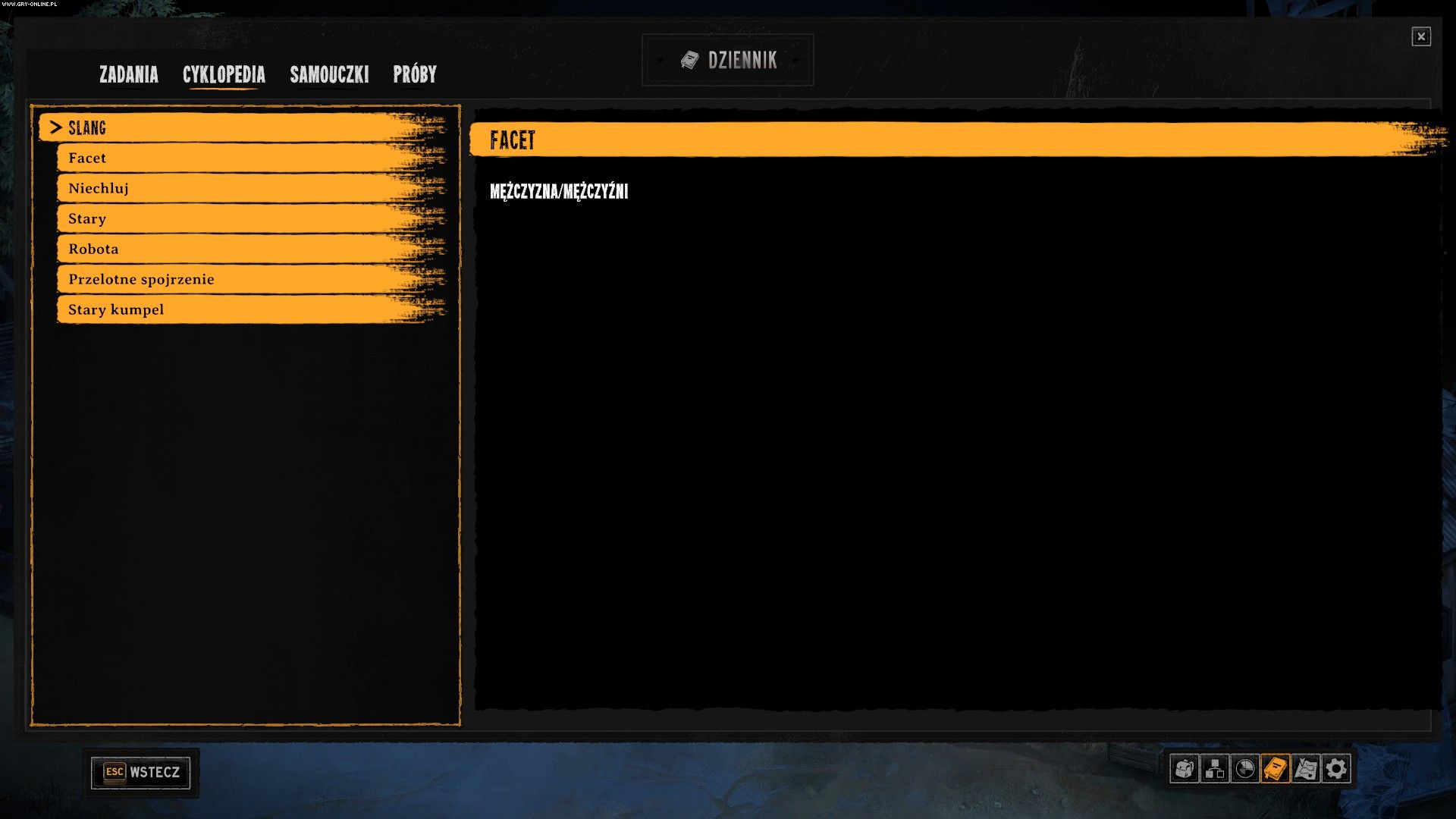 A.Z.: Taka ciekawostka: ostatnio wyszła gra Broken Roads, która miała polskie tłumaczenie. To jest gra osadzona w postapokaliptycznej Australii i twórcy umieścili w niej słowniczek australijsko-angielski. Co ma sens – slang jest specyficzny, niektórych słów mogą ludzie nie kojarzyć. Ale gra była tłumaczona na język polski, co samo w sobie stanowiło ogromne wyzwanie, a jeszcze trzeba było przetłumaczyć ten słowniczek. I tu twórcy podjęli najgorszą możliwą decyzję, czyli tłumaczyli z języka polskiego na polski. Na przykład były w słowniczku słowa typu...