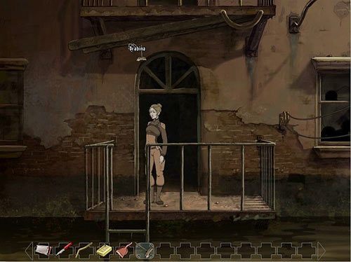 Szczotką ściągnij drabinę i wespnij się po niej na balkon piętro wyżej. Po zwalonym neonie, który opiera się o okno sąsiedniego budynku, przedostań się tam, skąd dobiegał głos Nigela.