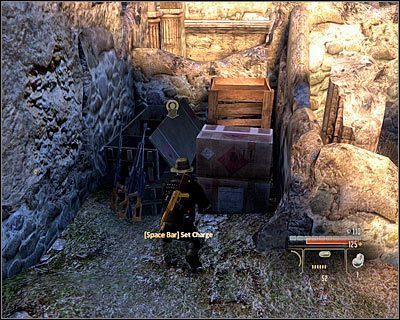 Zauważ, że jeśli się pośpieszysz, to możliwe będzie zaskoczenie i ciche wyeliminowanie dwóch patrolujących tę okolicę przeciwników. W przeciwnym wypadku rozpraw się z nimi w bezpośredniej walce, w miarę możliwości bez alarmowania strażników z ostatniej strefy ruin. Rozejrzyj się za kolejnymi sekretami - Custom Shotgun Grip (upgrade shotguna) (M12, 4 ) oraz SMG Recoil Nulifier (upgrade pistoletów maszynowych) (M12, 5 ). Ostatni trzeci skład broni odnajdziesz na północny-wschód od wyjścia z katakumb (M12, 14).