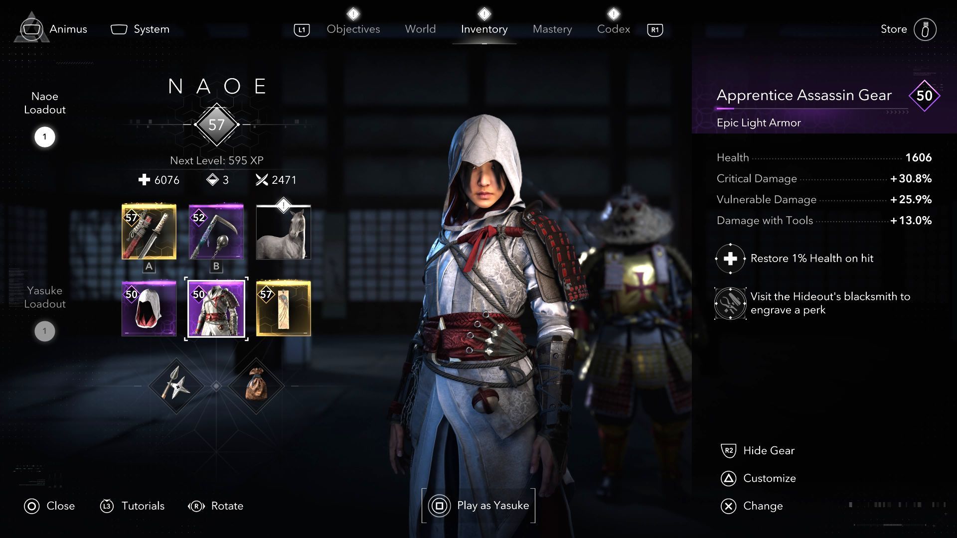 - Biały ubiór asasynów jest do odblokowania po odblokowaniu questu Tajemnice ostrza - to jedna z misji powiązanych z Naoe. Zajmujcie się jej questami z tablicy zadań (ma na niej swoją osobną mini-kategorię), a docelowo rozpocznie się to zadanie.
