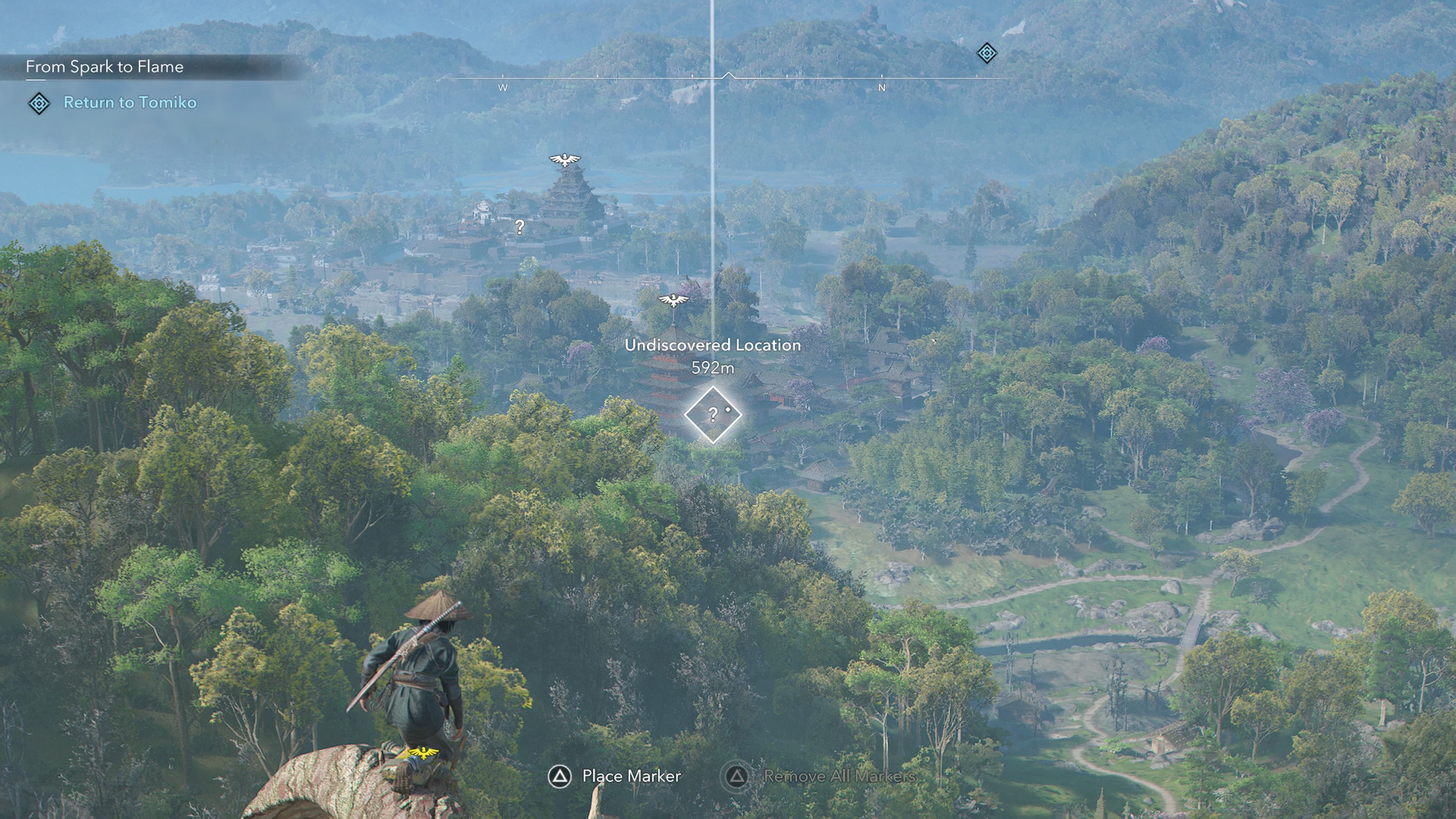 W poprzednich odsłonach Assasin's Creed istniała możliwość kontrolowania orła, który z lotu ptaka skanował otoczenie. W przypadku Assasins Creed Shadows taka opcja jest niedostępna. Lokalizować obiekty i zagrożenie będziecie mogli tylko za pomocą Naoe oraz Yasuke.