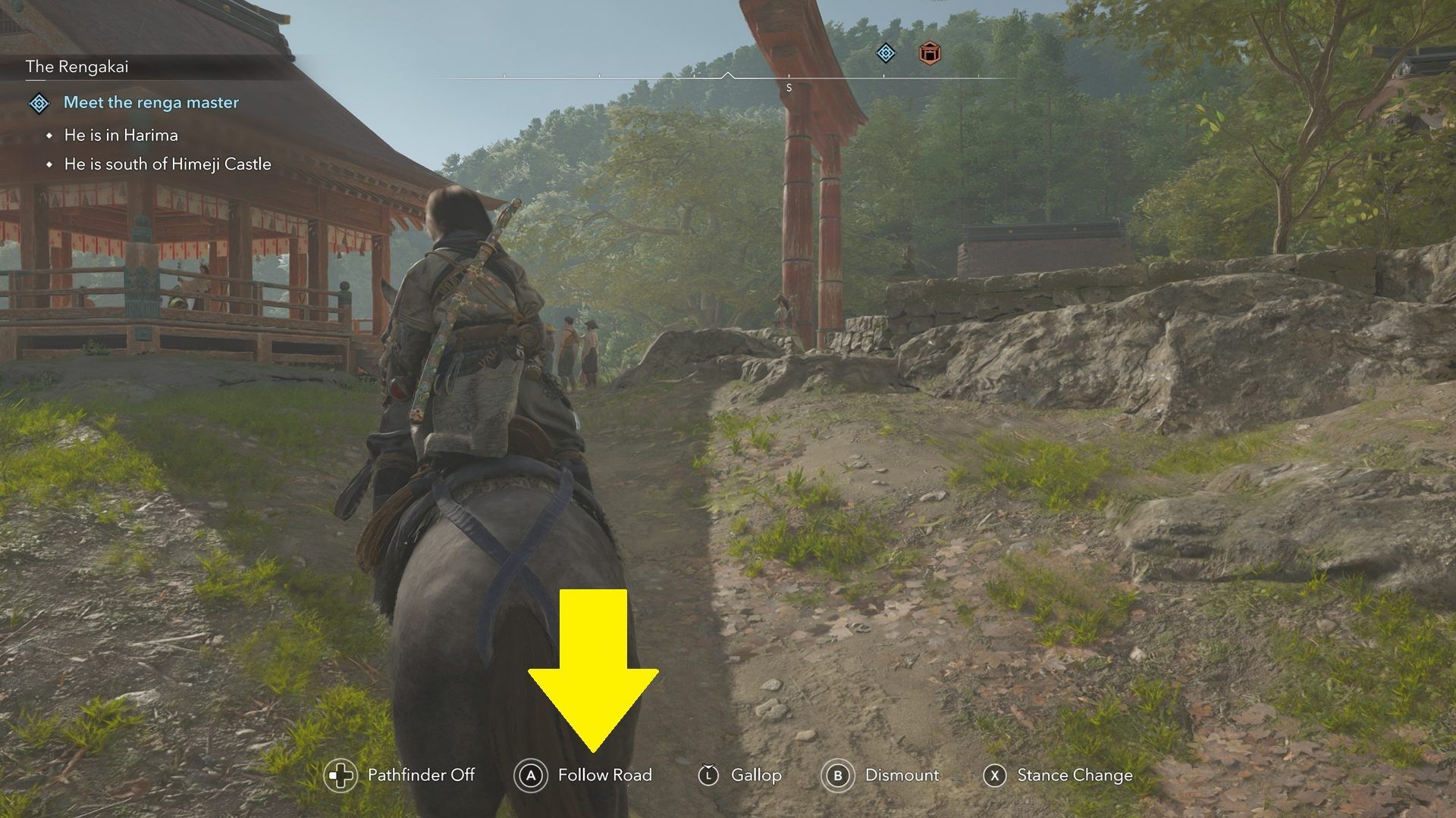 Auto-follow to przydatna funkcja ułatwiająca poruszanie się po rozległych, otwartych światach. Aktualizacja 1.0.2 wprowadziła t ę funkcję do AC Shadows, dzięki czemu konna podróż po Japonii stała się dużo przyjemniejsza.