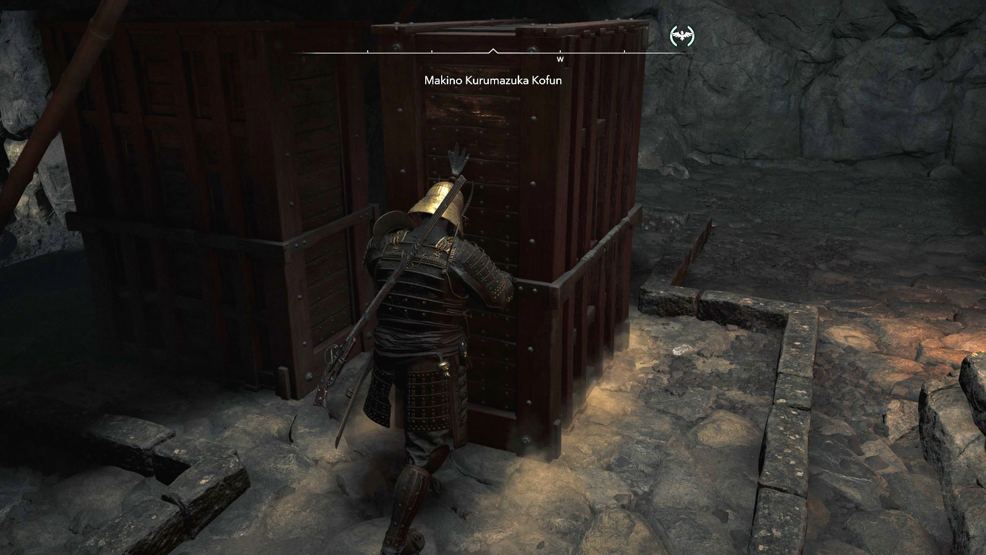 - W przykładzie z obrazka Naoe nie może dotrzeć do unikalnej znajdźki znajdującej się za wielką skrzynią. Rozwiązanie siłowe nie zawsze jest możliwe, bo gra może Wam nie pozwolić na zniszczenie dużej przeszkody atakami bronią białą czy w wyniku eksplozji.