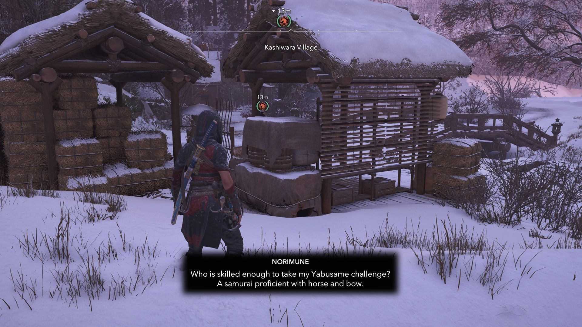 W pobliżu wioski Kashiwara. Za wykonanie wyzwania otrzymacie szarego konia Kumori.