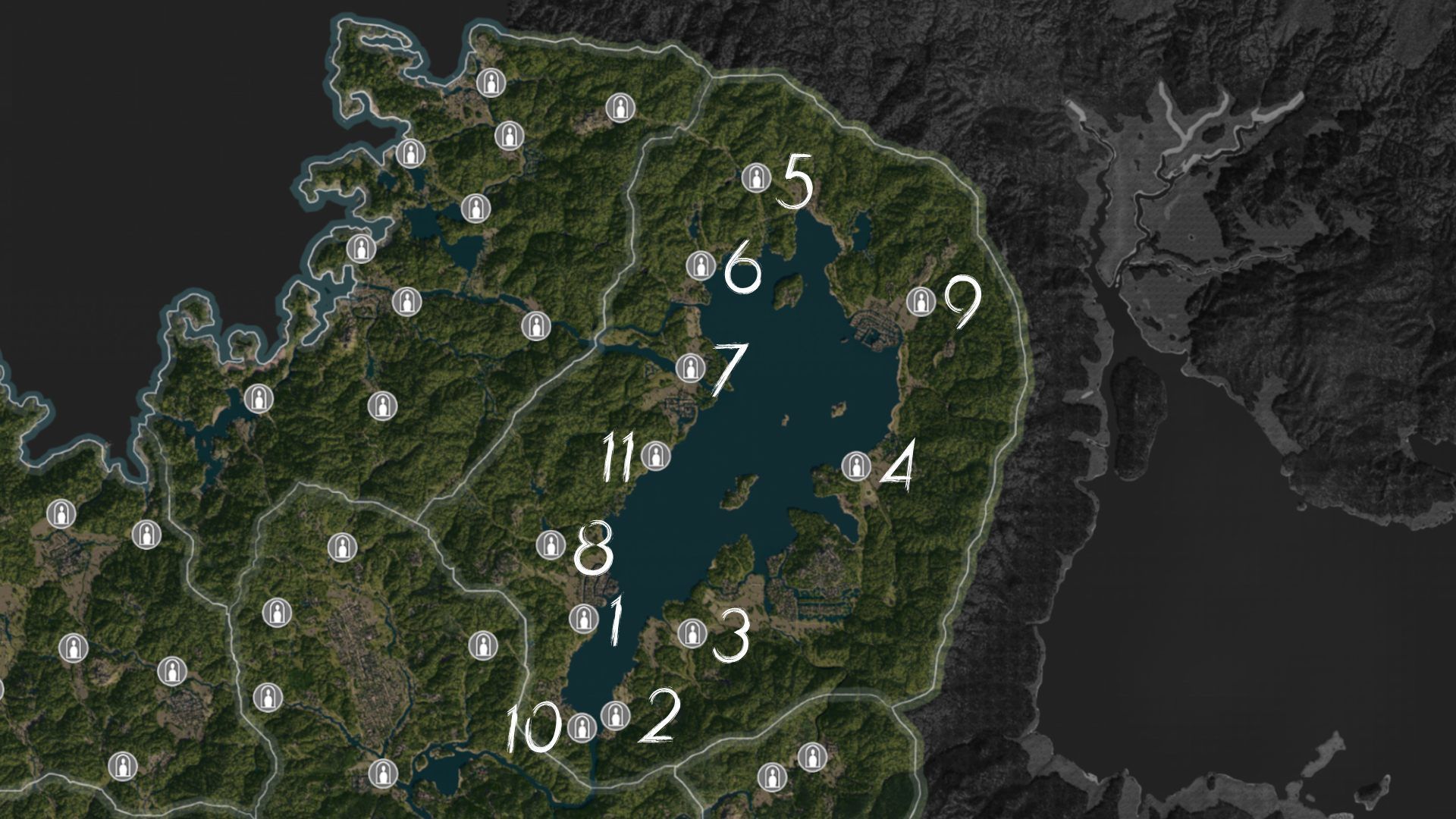 - 6. W centralnej części regionu, nad brzegiem rzeki. Na północny-zachód od zamku Katano.